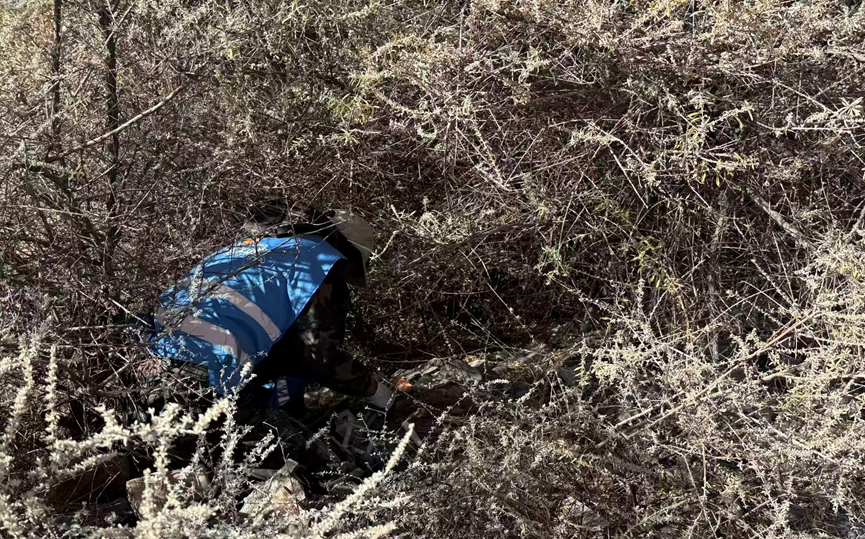 图为志愿者在清理草丛垃圾。(受访者供图)